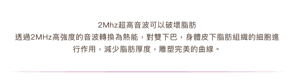 以高強度聚焦式超音波將能量精準地施打到治療部位的皮膚深度,以不傷害皮膚表面的方式加熱皮膚深部組織,使組織產生微細、獨立的熱凝結點,啟動人體自然重建能力,皮膚膠原蛋白再生重組,對於臉部,頸部和身體部位達到拉提輪廓、緊實鬆弛,減少老化現象的效果。